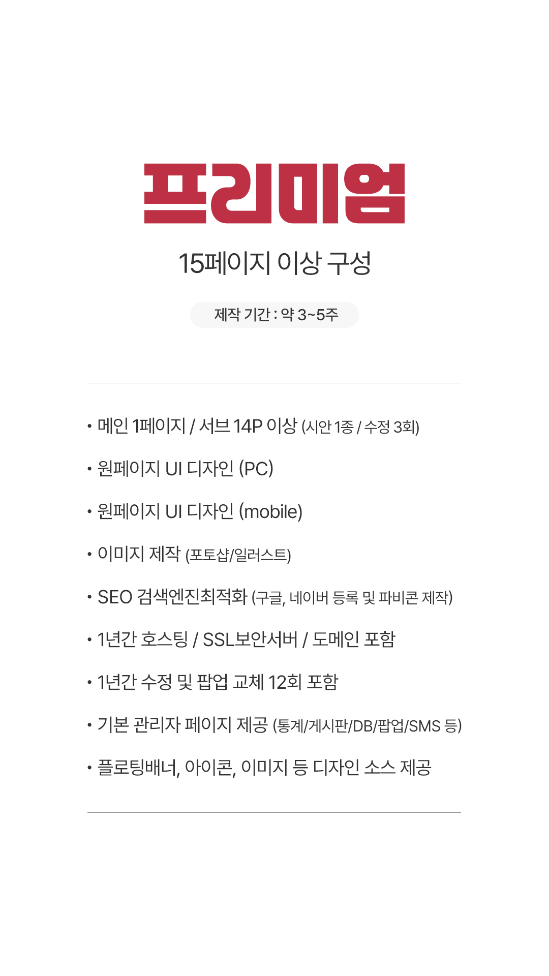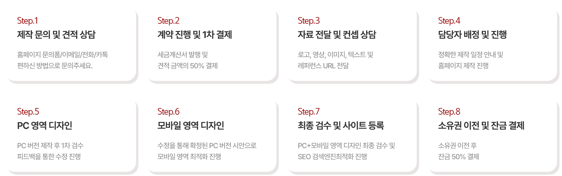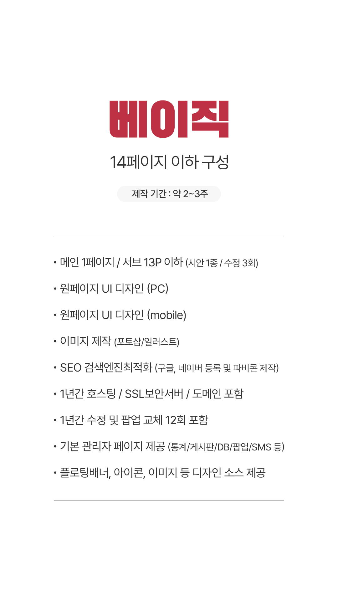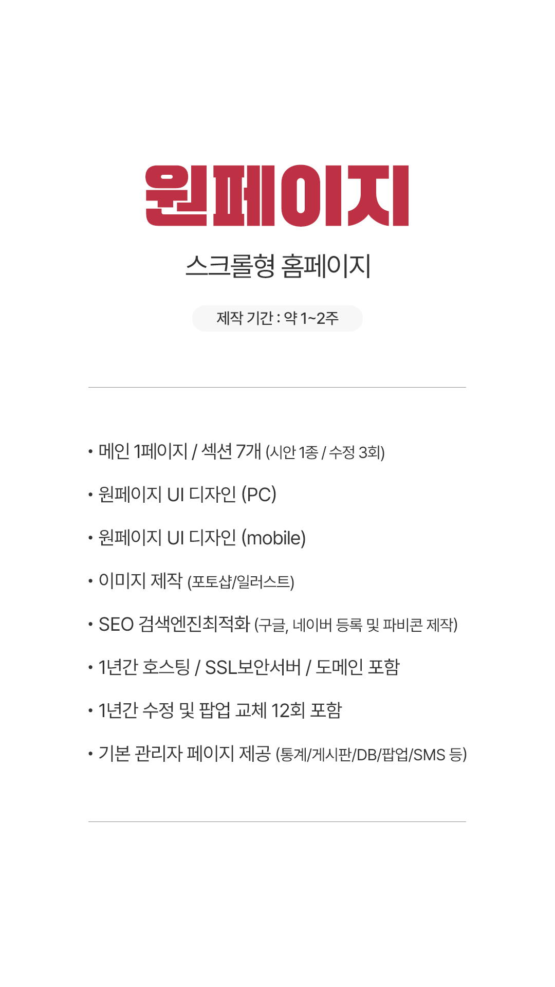 페이지 수량 및 추가 요청사항 등에 따라 견적이 달라집니다.